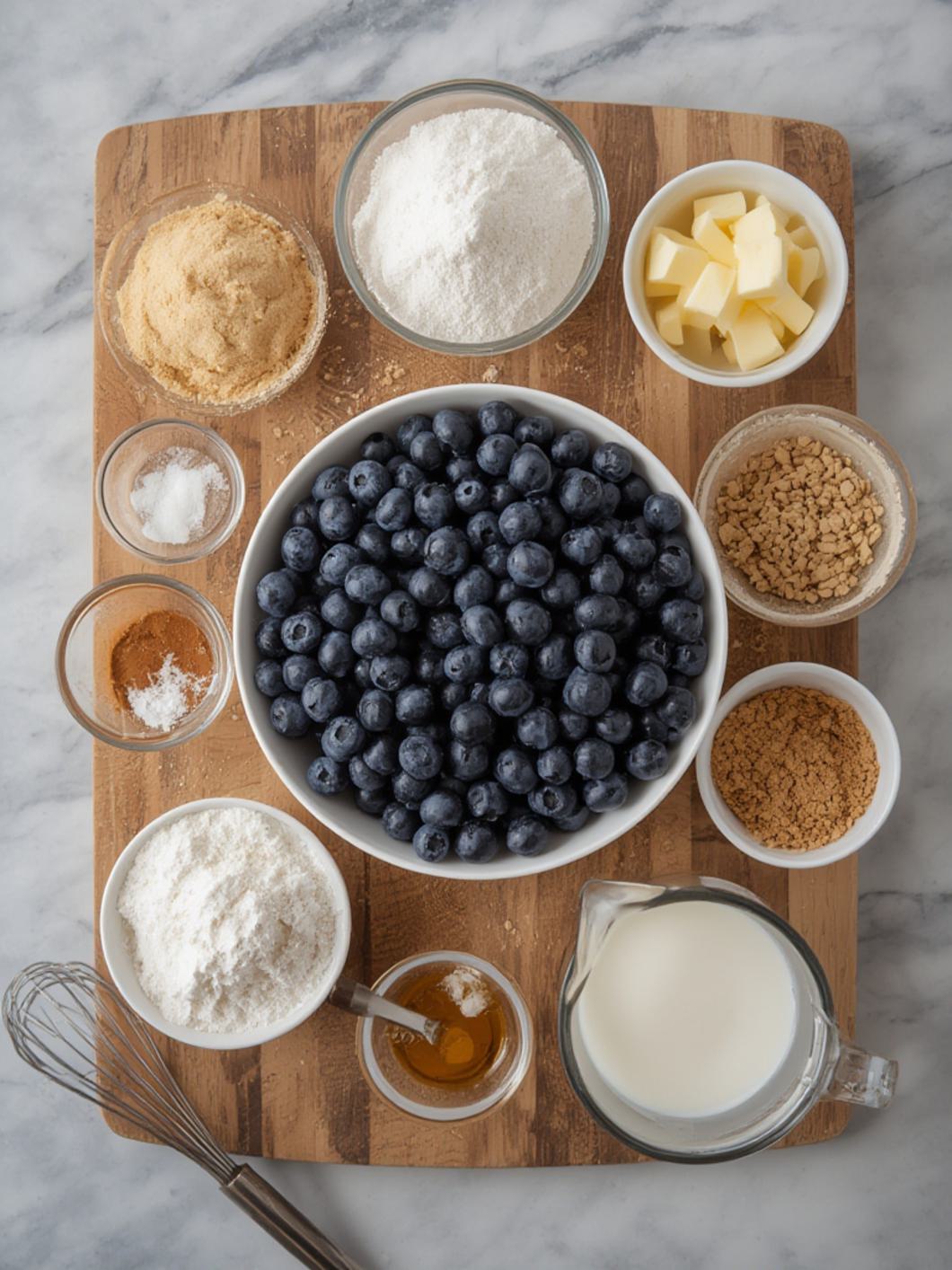 Chef’s Notes: Ensure blueberries are well-drained if using frozen, and toss them with a tablespoon of flour before adding to the batter to prevent sinking. Do not overmix the cake batter for a tender crumb.