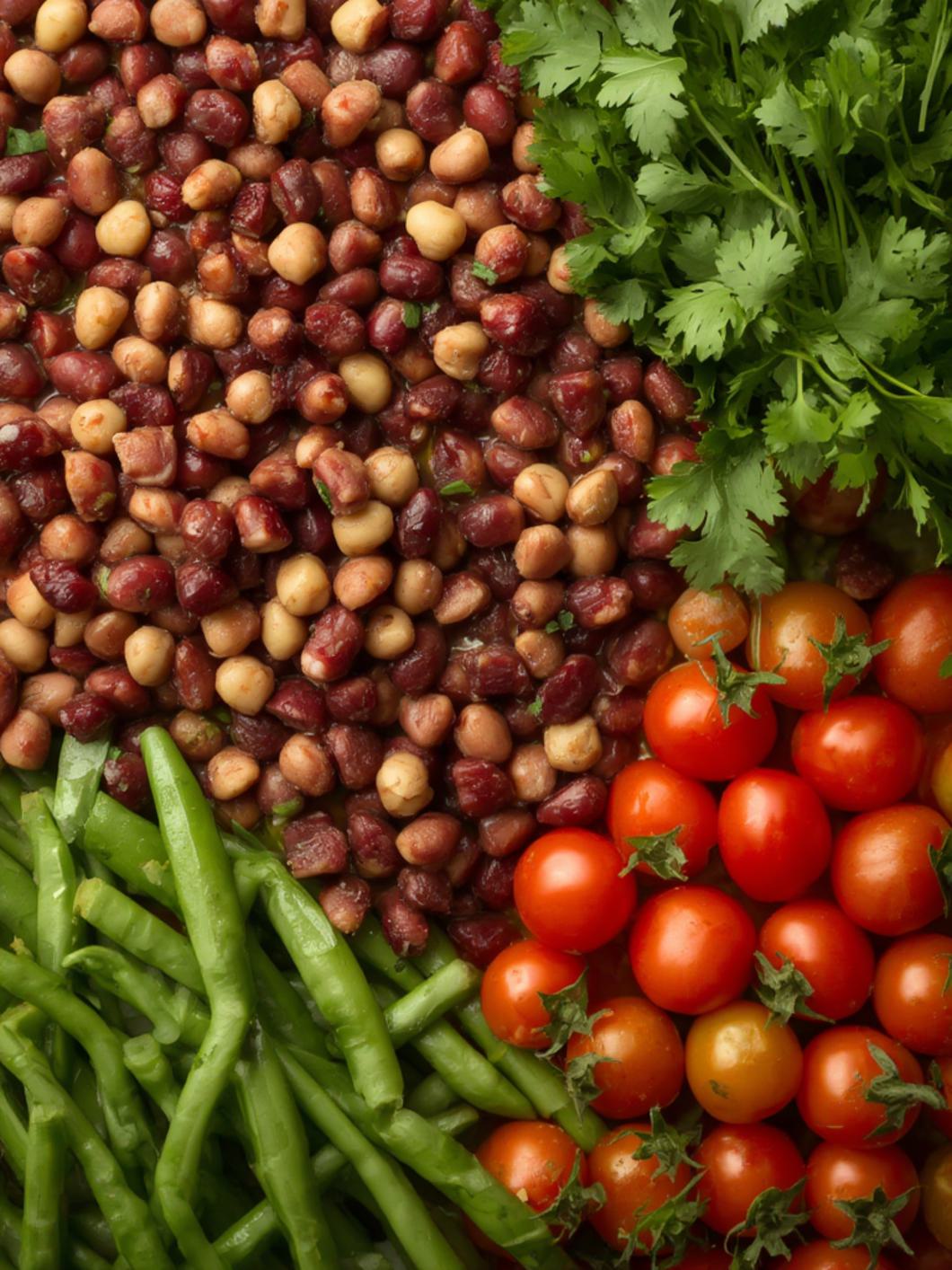 1️⃣ Combine Beans & Veggies – In a large bowl, mix all beans, bell peppers, onion, tomatoes, and parsley/cilantro.