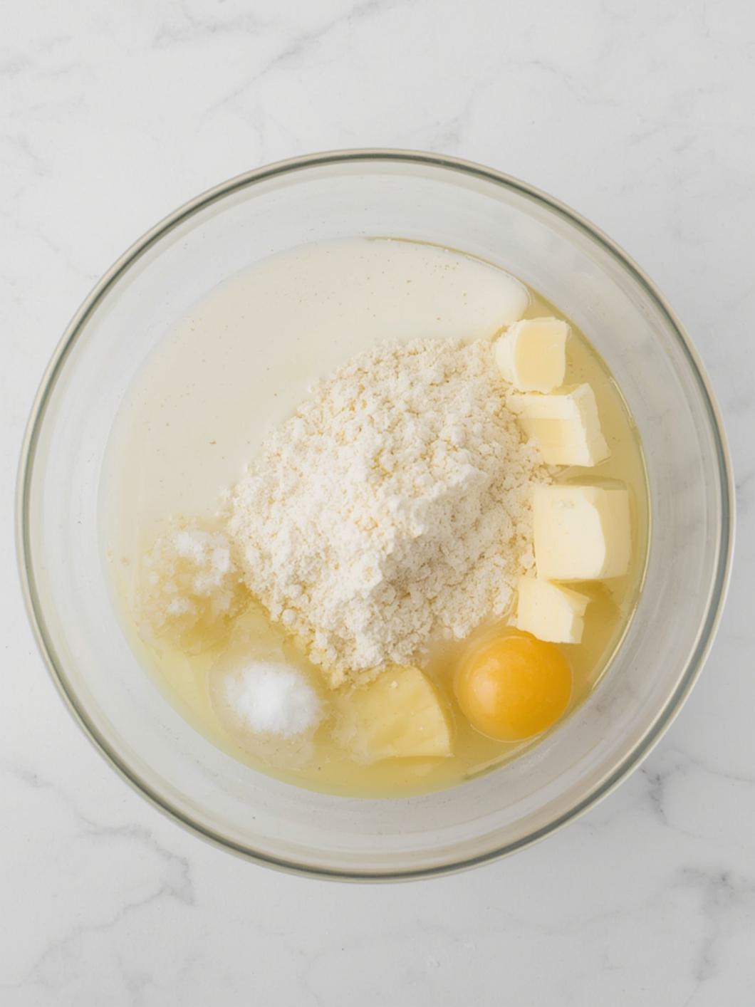 2. Whisk Wet Ingredients: In a medium bowl, whisk together the warm milk and room temperature eggs until well combined and slightly frothy.