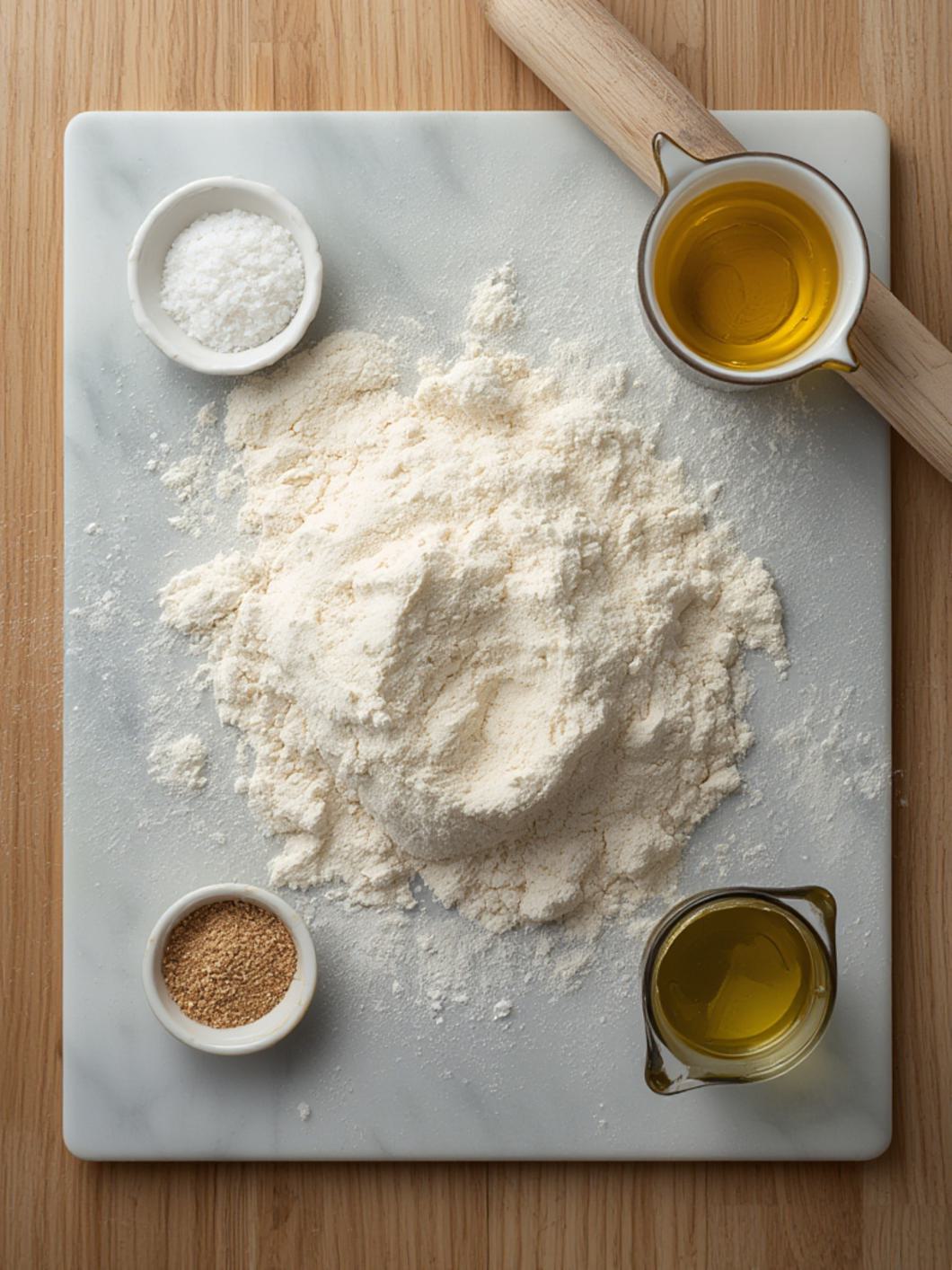Gather your minimal yet mighty ingredients for this simple Thin Crust Pizza Dough. You’ll be amazed at the flavor and texture achieved with so few items!
